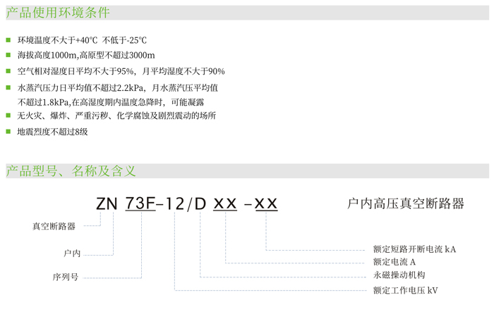 ZN73F-12型真空斷路器適用于以空氣為絕緣的戶內(nèi)式開關系統(tǒng)中。在正常的使用條件及斷路器的技術參數(shù)范圍內(nèi),ZN73F-12型真空斷
