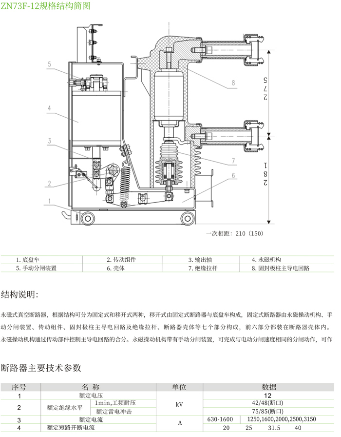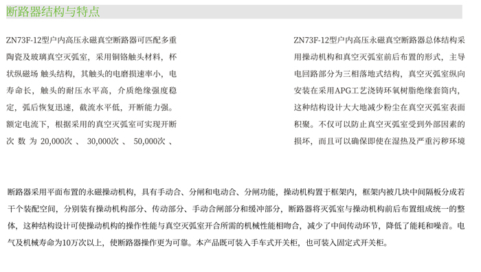 ZN73F-12型永磁機構戶內(nèi)高壓真空斷路器是我公司通過總結多年來積累的豐富的現(xiàn)場經(jīng)驗,本著安全可靠、長壽命、少維護的設計理念,憑借雄厚的技術實力自主研發(fā)的新一代高壓真空斷路器。